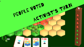 Fight against the opposing party to win the votes of the citizens. The more tiles you gain, the more chances you have at winning the next elections. But beware, your opposition might gain access to extra "funding" which can turn the tide of the next vote.